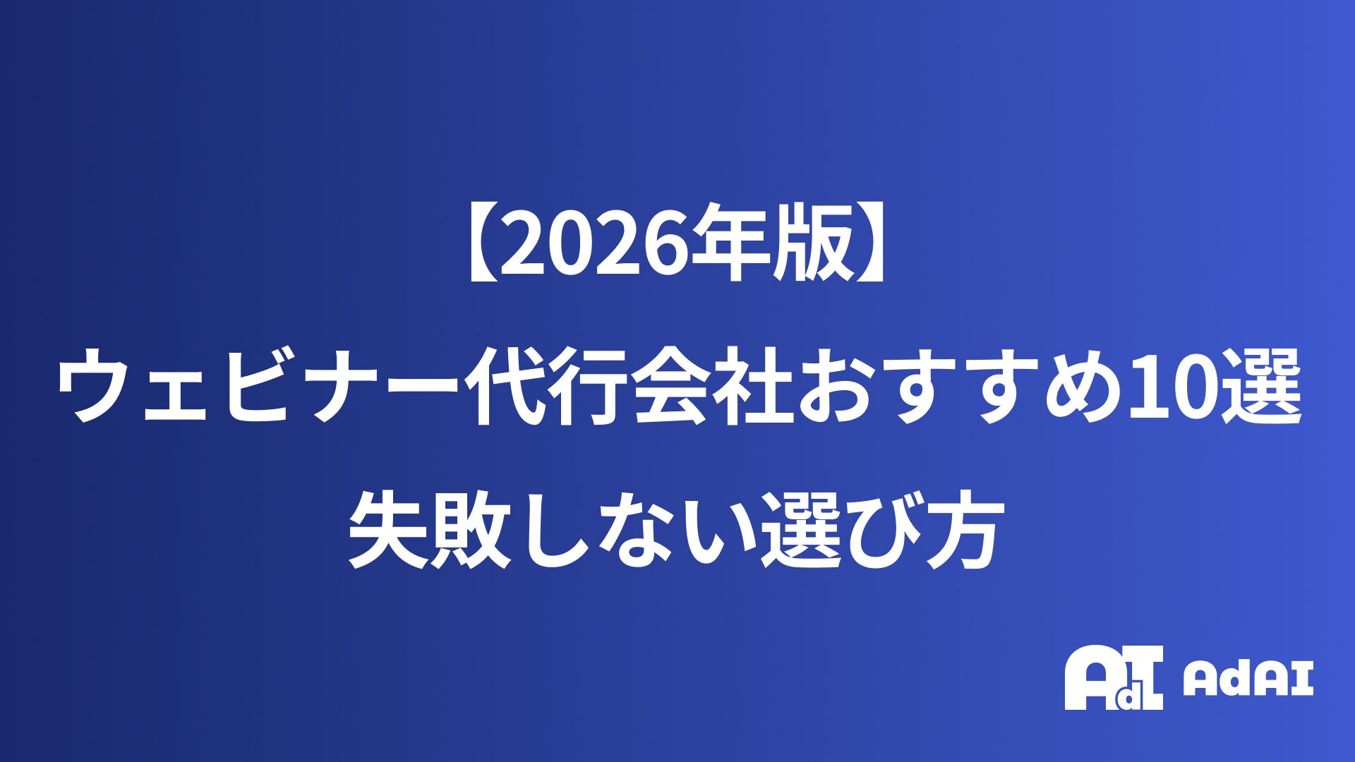 本記事では、200社以上の支援実績を持つAdAIの知見をもとに、ウェビナー代行(BPO)サービスの活用メリット、選び方のポイント、そして実績豊富な代行会社10社を詳しく解説します。自社運営と代行サービス、どちらを選ぶべきか迷っている方は、ぜひ最後までご覧ください。